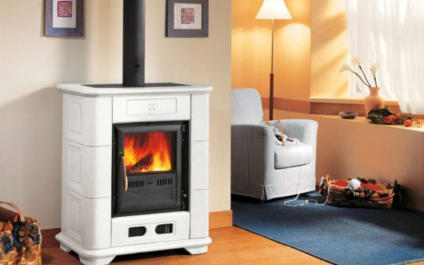 Esta estufa de leña se armoniza con un estilo clásico y garantiza el máximo confort en ambientes de grandes dimensiones. El revestimiento de mayólica está disponible en los colores Bianco Antico, Terra Oriente, Bordeaux y Verde. La boca frontal de salida del aire caliente es orientable.
